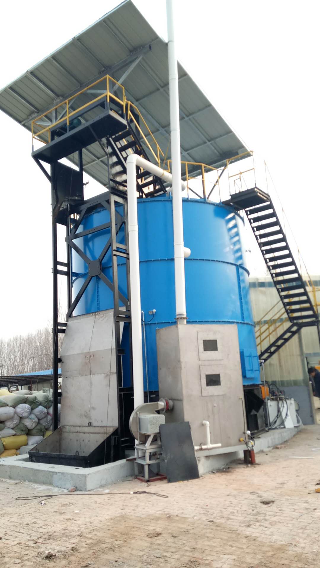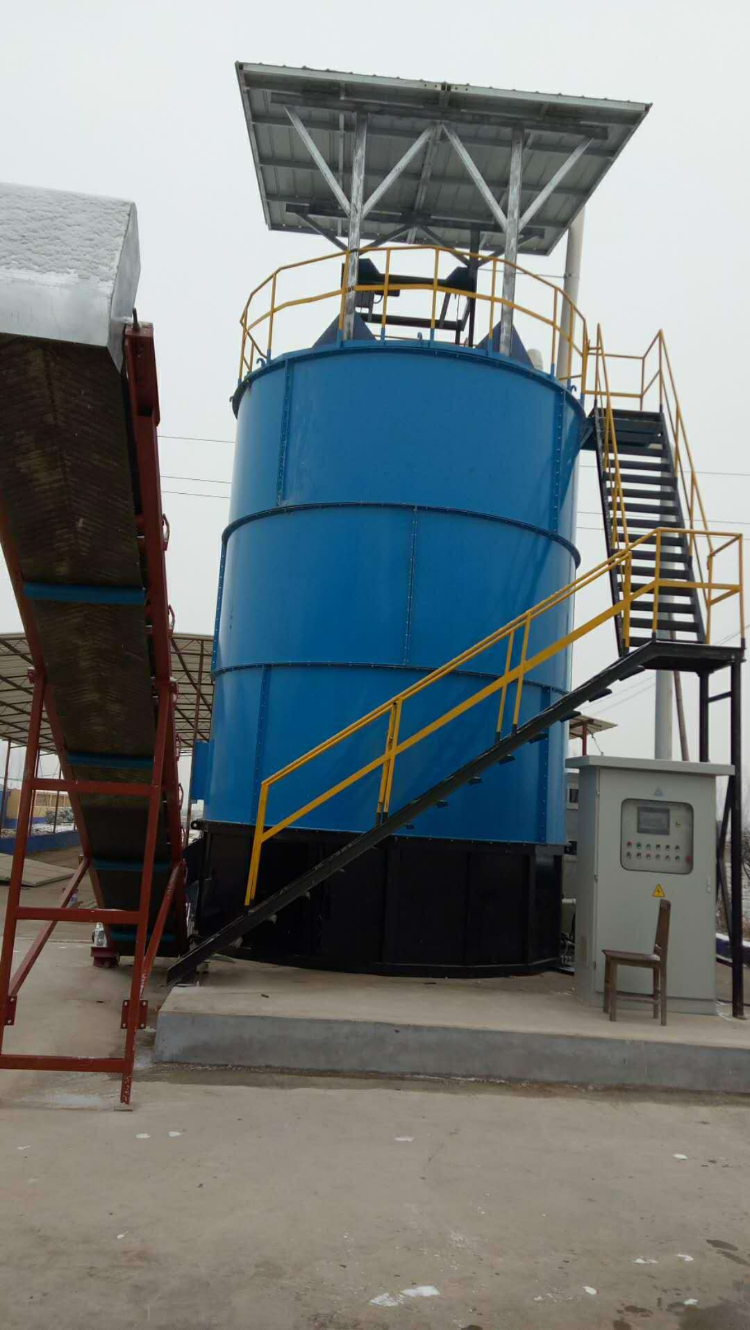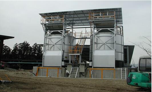 从混料机出来的混合料,经输送机械直接输送至立体好氧发酵仓料斗,混合物料自动进入立体罐进行发酵堆肥。